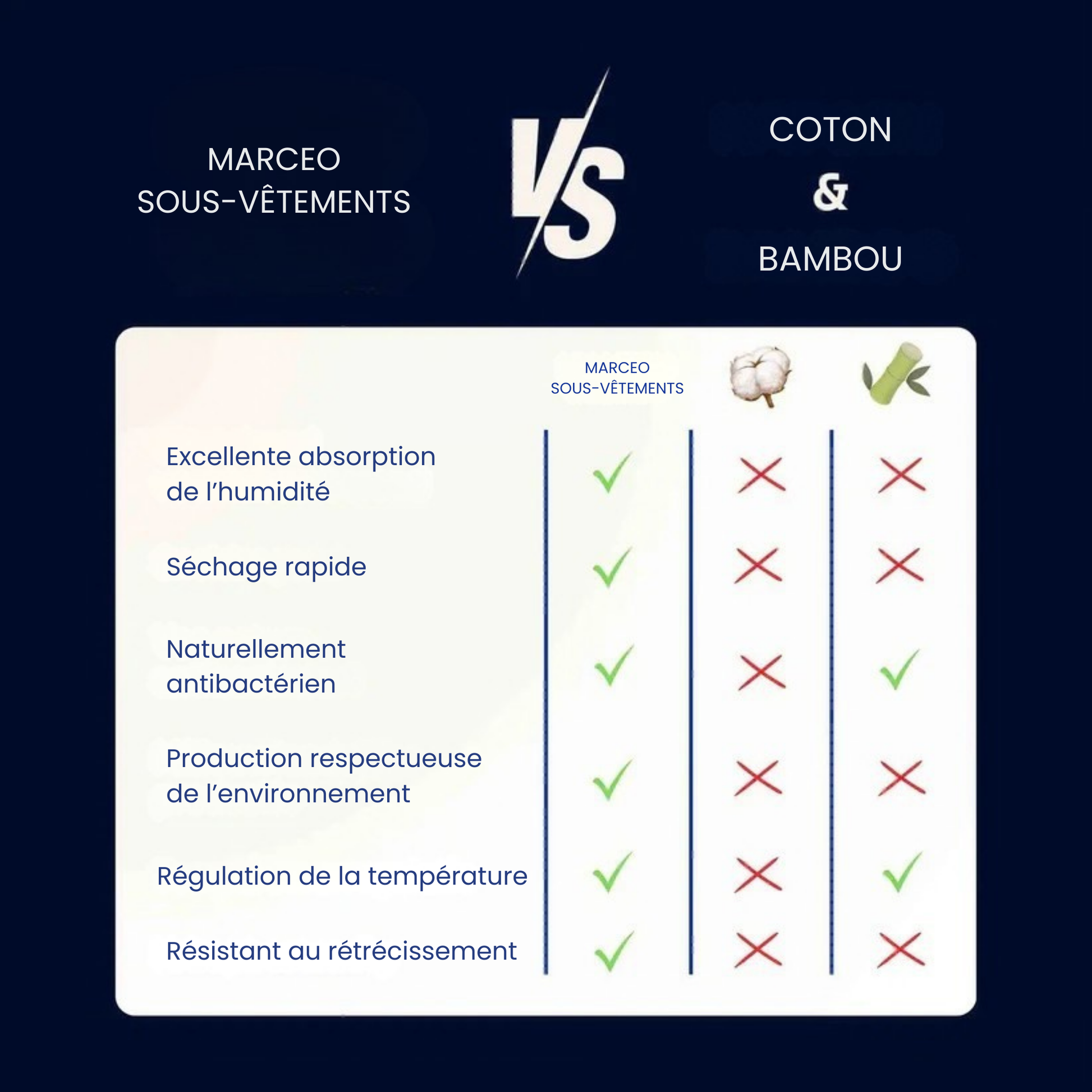 Sous-vêtements très agréables et respirants.