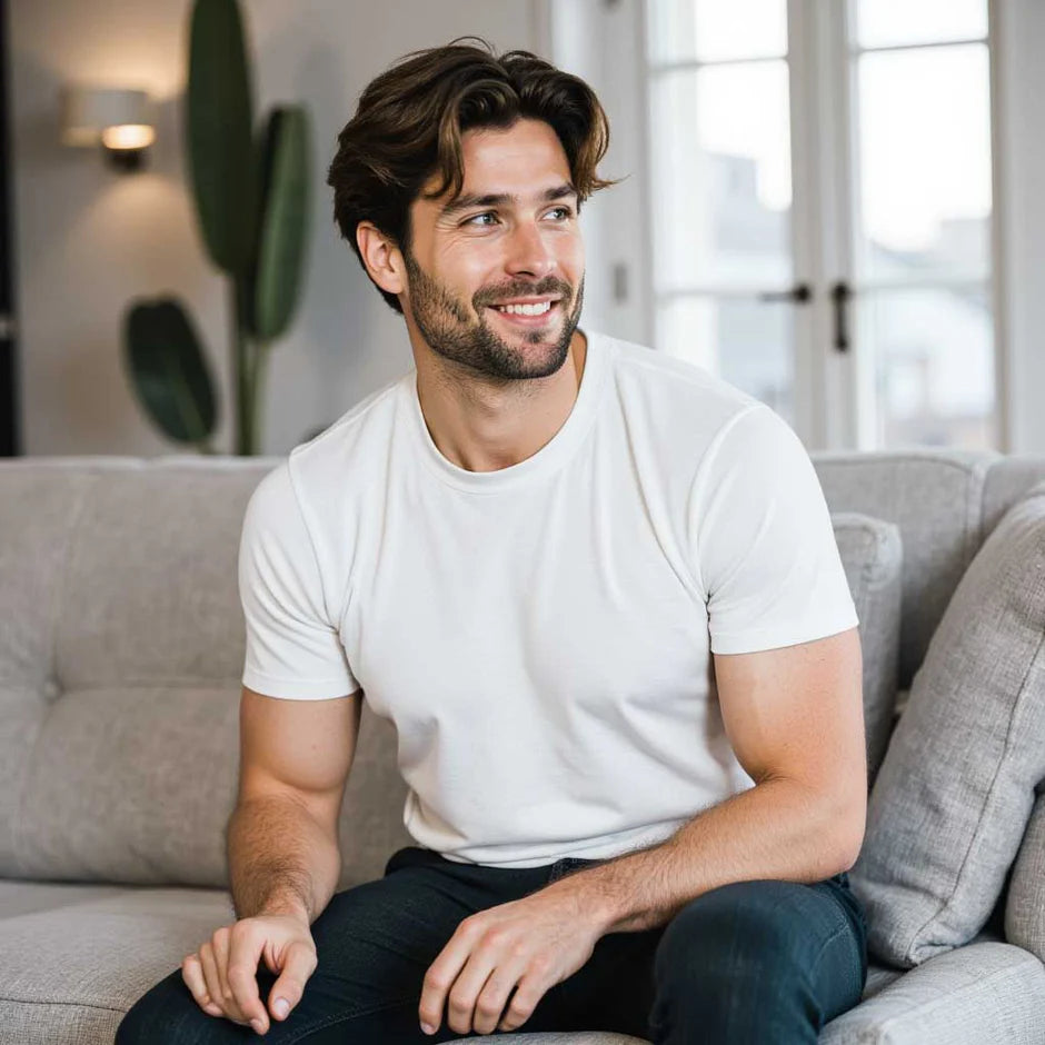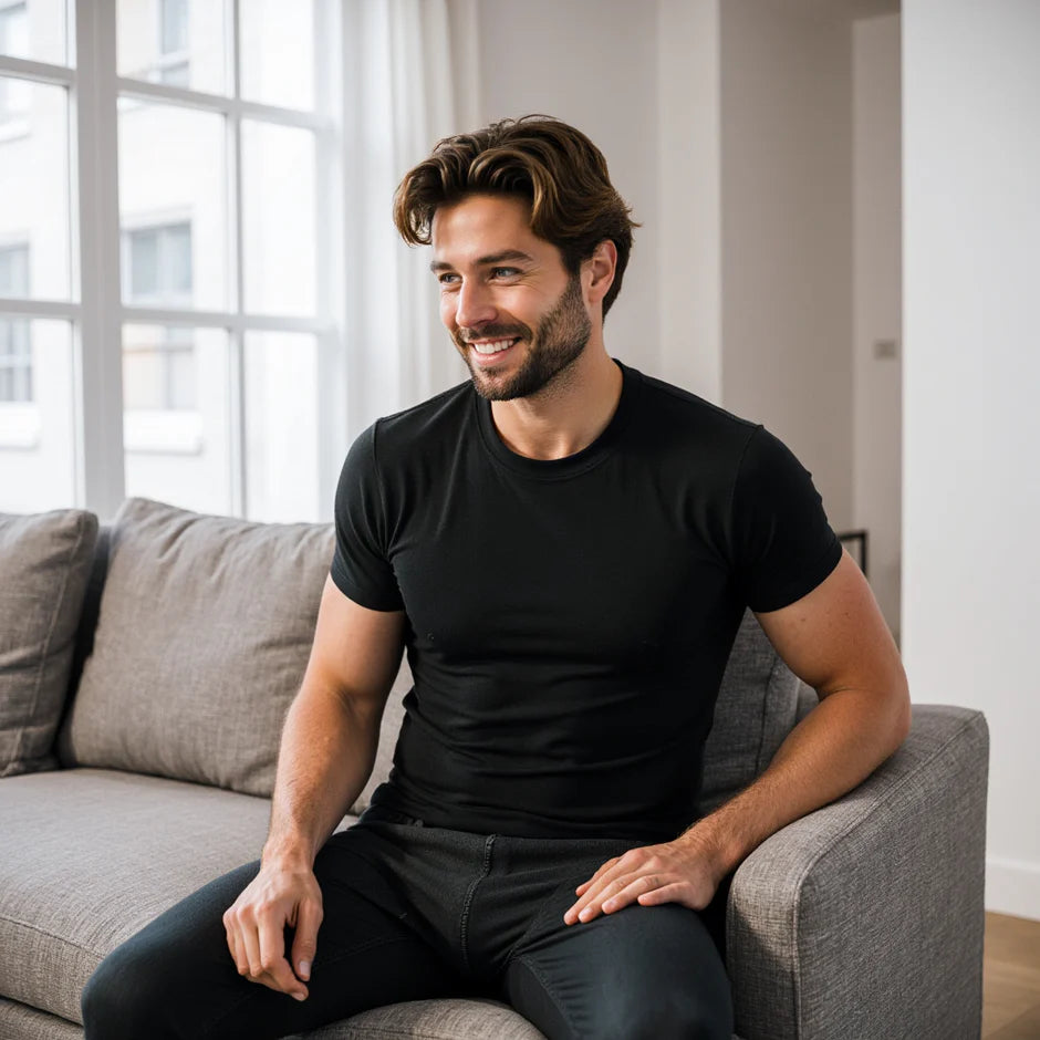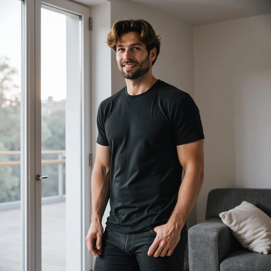 Ce T-shirt met en valeur les bras et la poitrine grâce à une coupe slim moderne, extensible sans être serrée. Portez-le comme sous-shirt ajusté ou choisissez une taille au-dessus pour une coupe plus classique. Les manches restent parfaitement en place sans remonter.
